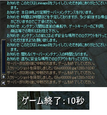 ちなみに、露店中、トレード中、ペット召還中だと、強制切断後、アイテムが失われる可能性が指摘されていますが、個人的にはアイテム消失を体験した事は有りません。