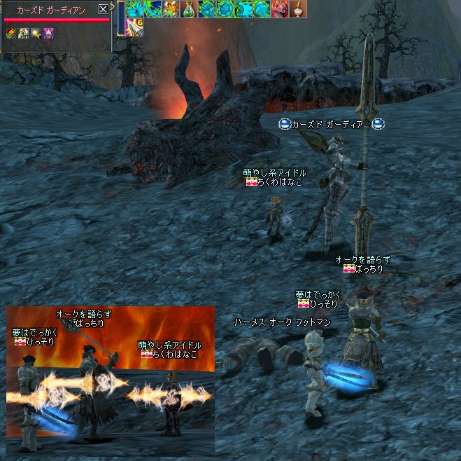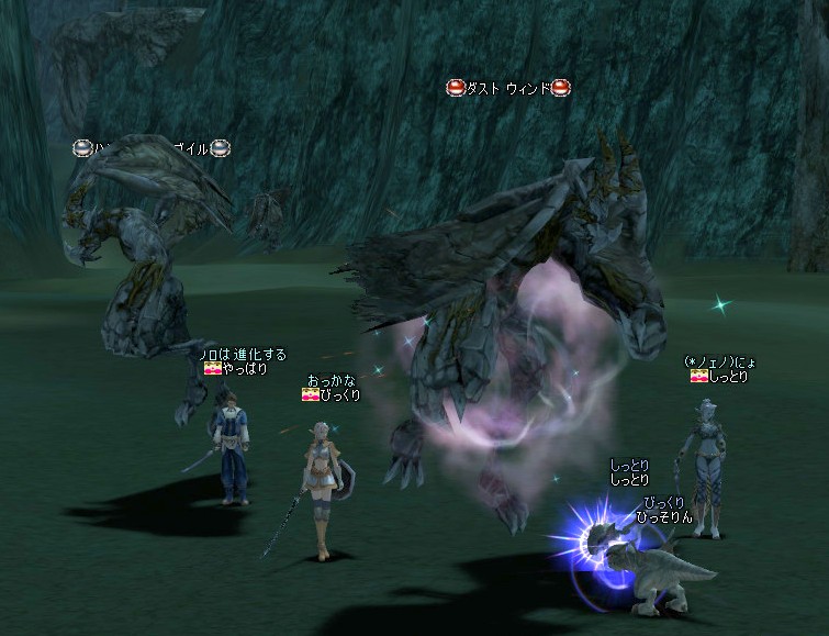無法者の森と違い、モンスの密集度が低く、一匹倒すと、次の一匹に喰い付くまでの時間を要する為、狩り効率が非常に悪く、おなじ狩場で他のPTが狩を始めると、瞬く間にモンス不足に陥ります。