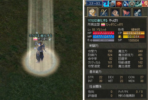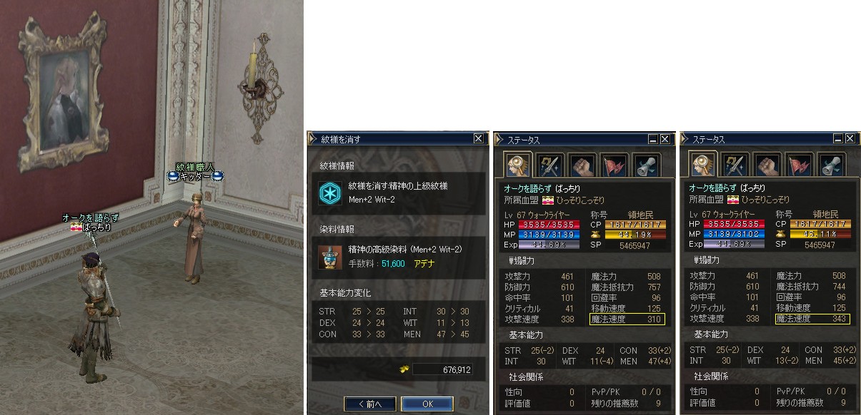 魔法速度は「310」から「343」へと「33」ポイント増加し詠唱はかなり向上しました。
