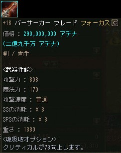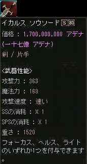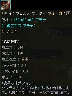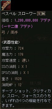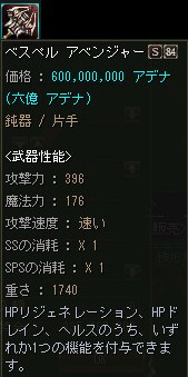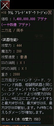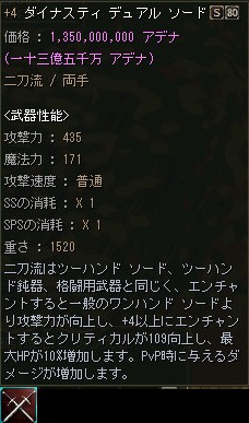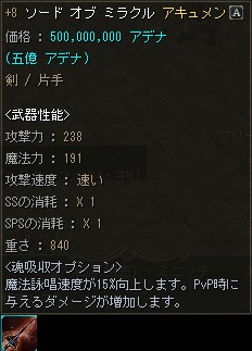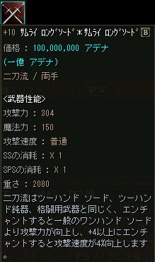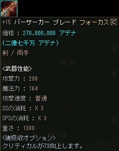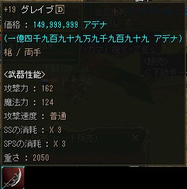 逆に売れない事を理由に+12ぐらいまでOEが進んでしまい、売価も恐ろしい金額になる事が有りますが、下級Aグレ武器のOE品としては妥当なお値段なのかも知れませんね。