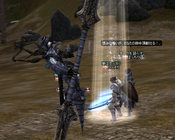 そういえば、昔は狩場が常に込み合っていたので、そういった譲り合いは当たり前だったのですが、最近になればなるほど、PTで狩場を占有し、他社の進入を許さない風潮が強化されており、すっかりおなじ狩場でPTメンがー以外が存在するとゆう事を忘れていました。