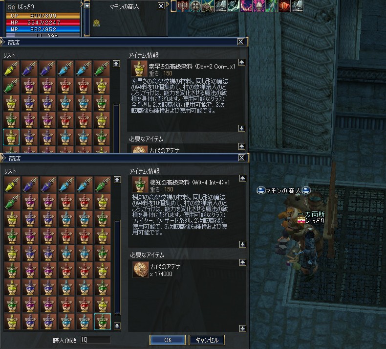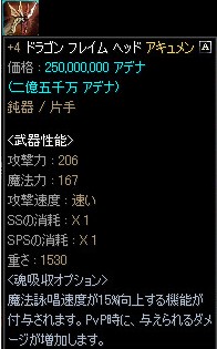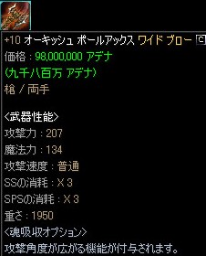 一方、OE品はこれをみたのが初めてで、+3程度の強化品だと売り払う時に裁き辛くなると考えているのか、かえって売れ残っている販売露店がありました。 |