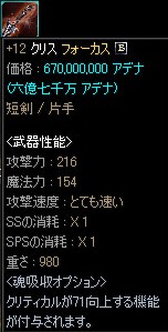 『【ダガー】+12:クリス:フォーカス