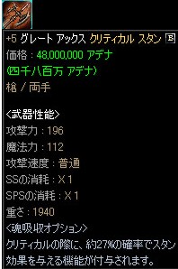 【槍】+5:グレート・アックス:クリティカル・スタン