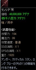 【槍】+10:ランシア:クリティカル・スタン