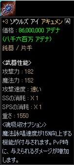 一時期、ばっちり用として購入の意志を固めていたソウルズ・アイですが、「+11ソウル・ストーン」がみつからず、+8ホムアキュに鞍替えしました。 |