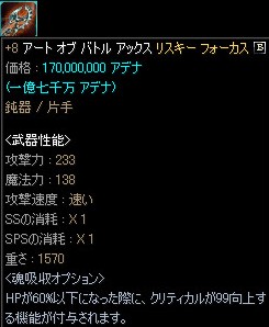 【鈍器】+8:アート・オブ・バトル・アックス:リスキー・フォーカス