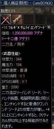 しかし最近はCグレ最強からランク・アップを考えているキャラが多いのか、Cグレ最強を求められるだけの資金のある人、もしくはそのLV帯のキャラが少ないのか、90Mまで下がっても売れ残るケースもあるのには驚きました。 |