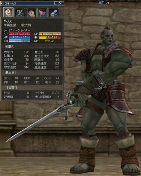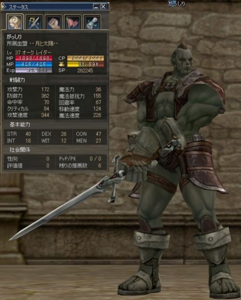 LV37までNグレ装備で通して来たが、アデナもある程度貯まって来たので、 がっしりには、鎮魂のガントレットとパワー・ブーツを、 ばっちりには、鎮魂のガントレットとパワー・ブーツに加え、ひよこ上下を装備させた。